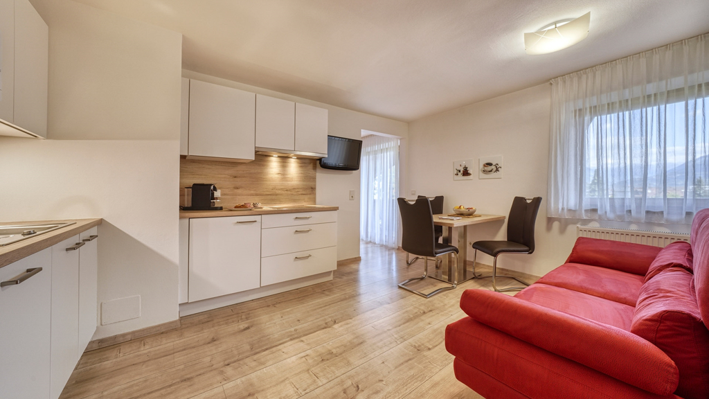 Materiali naturali di alta qualità come legno e pietra, tessuti pregiati e arredi che non lasciano nulla a desiderare promettono una vacanza confortevole, in cui puoi trascorrere ogni nuovo giorno della vostra vacanza proprio come preferite. Colazione nel pomeriggio perché il meraviglioso letto a molle Boxspring è talmente comodo che vi porta a dormire più a lungo? Cucinare per sé e per i propri cari perché dà tanto piacere? Siete voi che determinate la vostra giornata! E se preferite lasciare i fornelli freddi, troverete diversi ristoranti nelle immediate vicinanze - dalla cucina tradizionale altoatesina alla pizza, pasta ai ristoranti gourmet. Lo stesso vale per lo shopping: a pochi passi dal Kreuzwegerhof troverete diverse panetterie, supermercati, gastronomie e fruttivendoli. E tutti coloro che vogliono rimanere aggiornati in vacanza: ovviamente la WiFi è disponibile in tutta la casa! Continuate a scorrere a conoscere i nostri appartamenti.